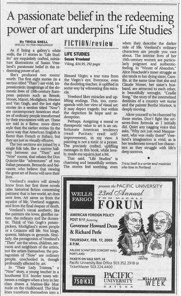 Review of LIFE STUDIES, collection of stories by Susan Vreeland The Oregonian, Jan. 9, 2005. Click on the image to enlarge it. review-susanvreeland Share this:FacebookTwitterLinkedInEmail Share this:FacebookTwitterLinkedInEmail Share this:FacebookTwitterLinkedInEmail