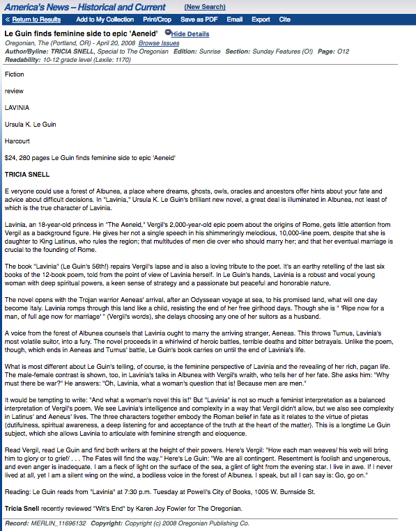 - Review of LIFE STUDIES, collection of stories by Susan Vreeland